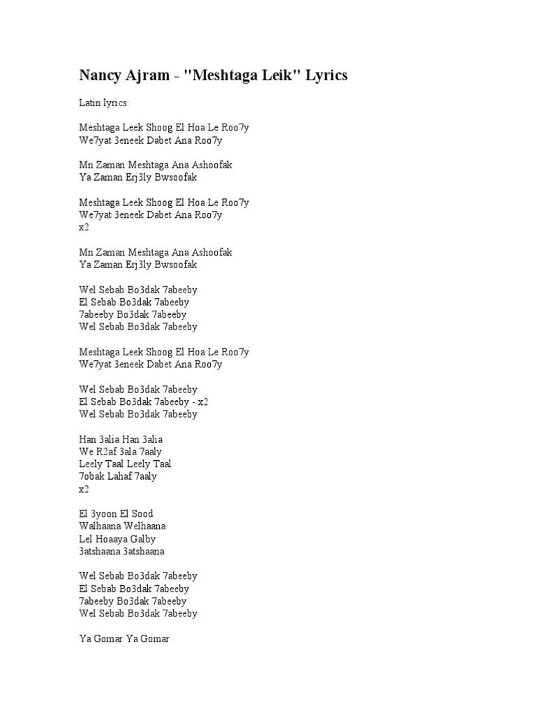 This song was the lead single the first to be released. Pages Public Figure MusicianBand Arabic Keyboard Piano and Guitar Chord Charts Music Score and Lead Sheet. Chord Chart Sheet Music for Nancy Ajram.